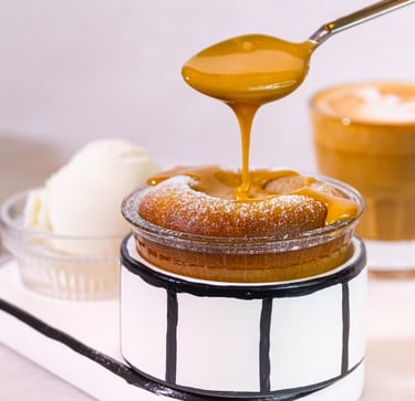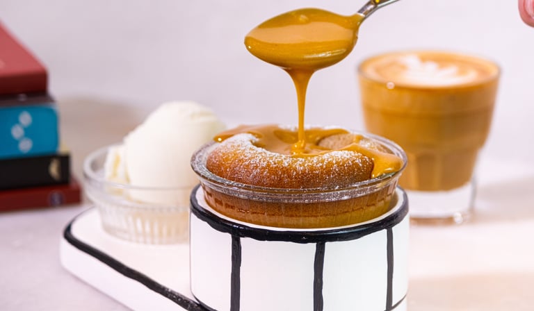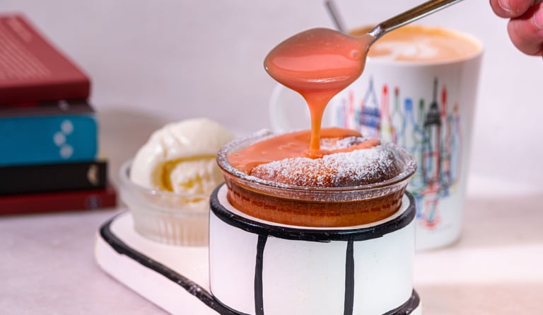 Böylece misafirlerimize, sufle deneyimini zenginleştiren ve damakta iz bırakan uyumlu bir kahve eşlikçiliği sunuyoruz.
